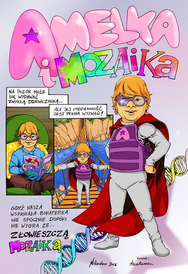 Amelka jest trzyletnią dziewczynką z bardzo rzadką wadą genetyczną, która wiąże się z wieloma schorzeniami – Trisomią Chromosomu 20 w postaci mozaiki. Poza rehabilitacją ruchową, integracją sensoryczną, dogoterapia, hipoterapią, zajęciami z psychologiem i logopedą, Amelia nosi na noc gorset stabilizujący kręgosłup, w ciągu dnia ma zasłaniane oczko. Bardzo duże znaczenie dla jej terapii mają turnusy rehabilitacyjne organizowane przez Fundację ”Król i Smok”.