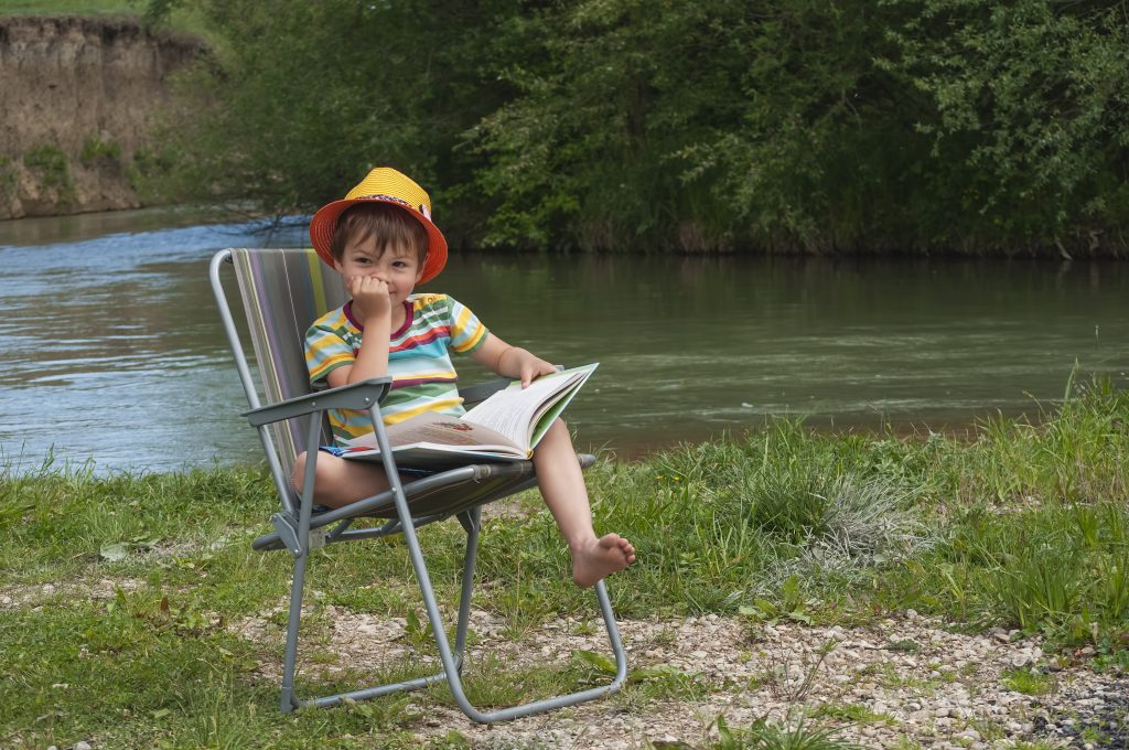 4-latek z książką na leżaku