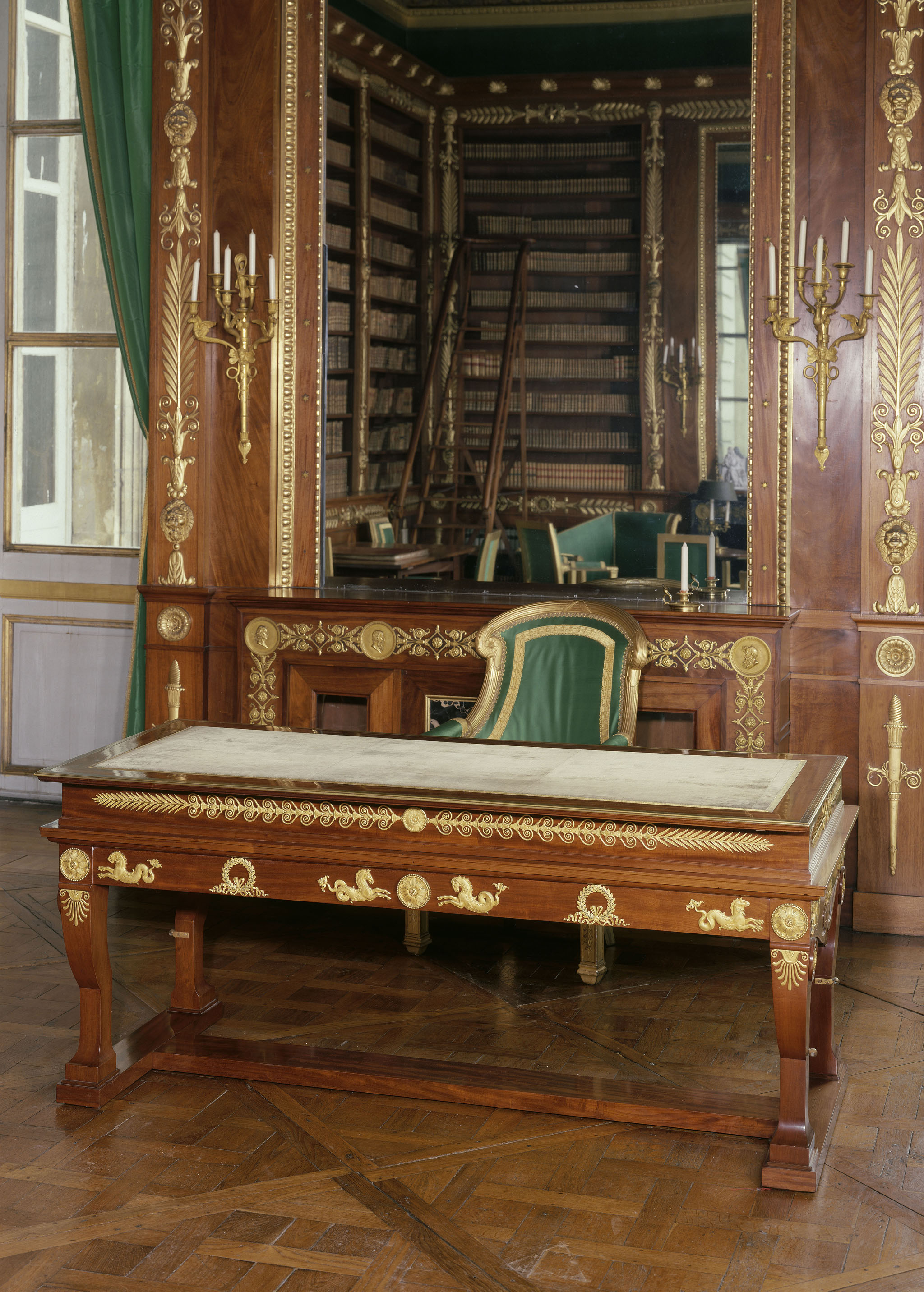 Wśród eksponatów z cesarskich rezydencji najwięcej emocji budzą oczywiście te najściślej związane z imperatorem i jego małżonkami. Na uwagę zasługuje przede wszystkim biurko mechaniczne z Compiègne, wykonane przez Desmaltera, a zaprojektowane przez samego Napoleona jako mebel z automatycznie cofającym się górnym blatem. Cesarz-wynalazca zamawiał do swoich pałaców całe serie tego modelu, które różniły się między sobą jedynie ornamentami bądź obrysem nóg.