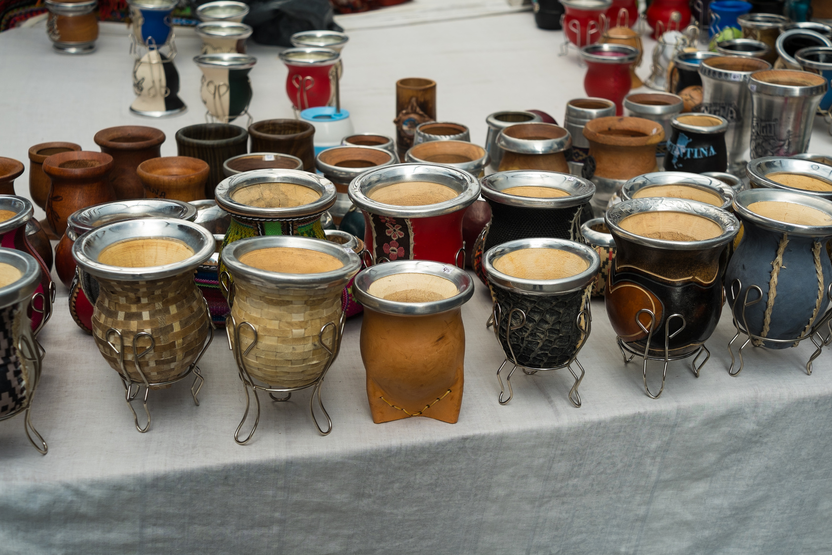 Tradycyjnie Yerbę pije się z naczynia (matero) wykonanego np. z tykwy (calebassa). Przed pierwszym wypiciem yerby należy je przez kilka godzin zalać (najlepiej naparem z Yerby), wylać i ostrożnie wydrążyć naturalną gąbkę ze środka. Dopiero po tej czynności możemy używać naczynia do picia. W takich naturalnych calebassach nie wolno zostawiać resztek liści ani samego napoju, bo spowoduje to uruchomienie procesów gnilnych albo powstanie pleśni. Oczywiście do mycia nie wolno używać detergentów (które miałyby później wpływ na smak naparu), a jedynie wyparzać je i pozostawić do wyschnięcia. Obecnie z równym powodzeniem możemy używać szklanek albo specjalnych naczyń ceramicznych. Na świecie można także kupić specjalne termosy. Ważniejsza jest specjalna „słomka”, czyli bombilla, która zapobiega wypijaniu fusów.