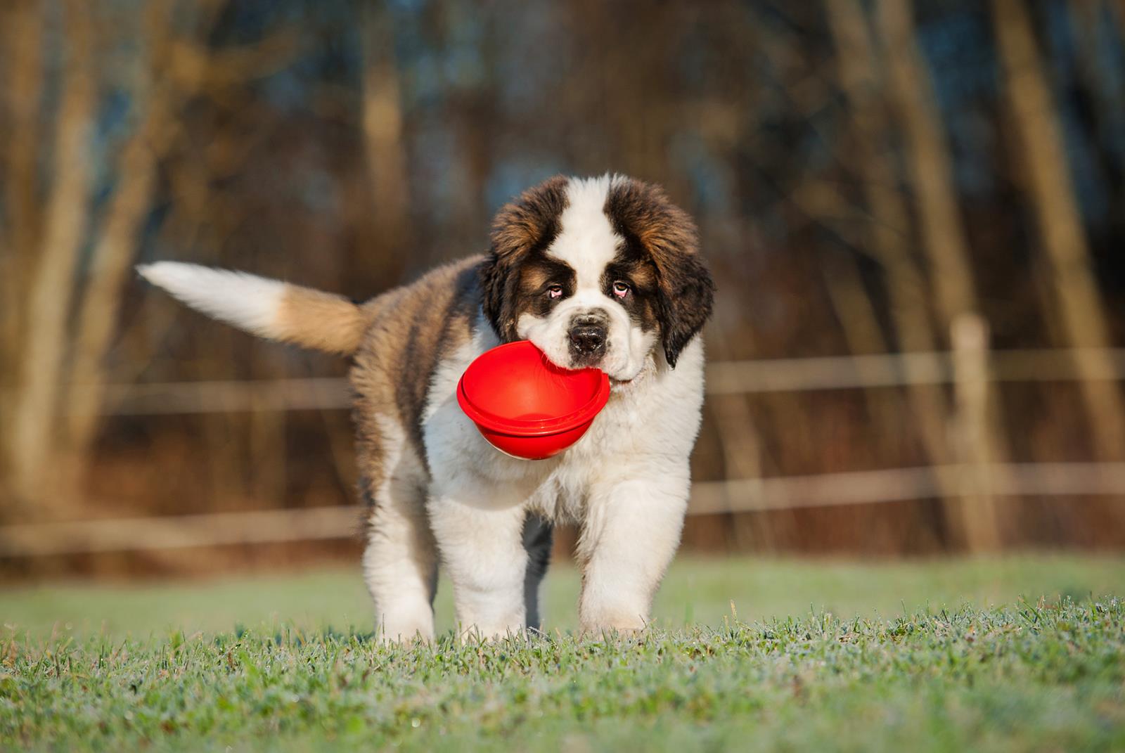 Szczeniak powinien mieć dostosowaną karmę do swojego wieku oraz rasy. W karmie musi być odpowiednia zawartość mięsa – czyli białka, które jest niezbędne dla prawidłowego wzrostu i rozwoju naszego pupila. W karmie powinien być również zachowany odpowiedni stosunek wapnia do fosforu (maximum 2:1). Niezwykle istotna, szczególnie dla szczeniąt ras dużych i olbrzymich, jest obecność w karmie glukozaminy i chondroityny, które odgrywają kluczową rolę w prawidłowym funkcjonowaniu układu kostno – stawowego. Oczywiście musimy również zadbać o odpowiednią zawartość witamin. Dla szczeniąt ras dużych i olbrzymich, przykładem dobrze zbilansowanej karmy jest Eminent Gold PUPPY LB 31/15