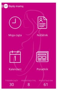 Ma funkcję przypominania o badaniach, które powinny być wykonane w odpowiednim tygodniu ciąży. Radzi czy i jak ciężarna powinna zweryfikować swoją dietę, np. czego unikać. Informuje także, jakie warunki trzeba spełnić starając się o becikowe po urodzeniu dziecka. Aplikacja jest urozmaicona o filmy wideo i zdjęcia, które dodatkowo wyjaśniają wiele potencjalnych wątpliwości.