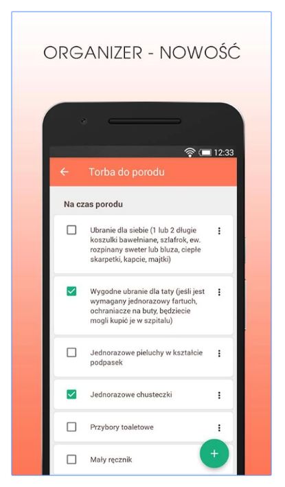 Ważne, szczególnie dla kobiet w pierwszej ciąży, są listy spraw do załatwienia, rzeczy do kupienia i zabrania do szpitala: